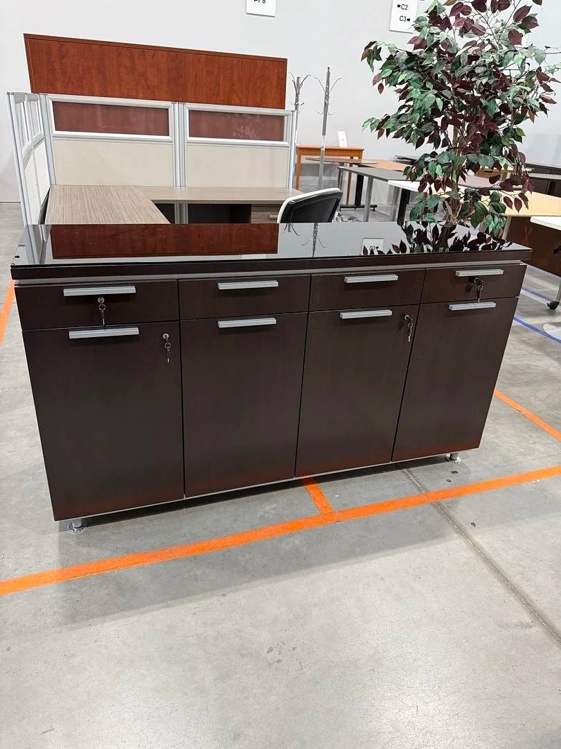 Glass Top 4 Drawer 4 Door Credenza