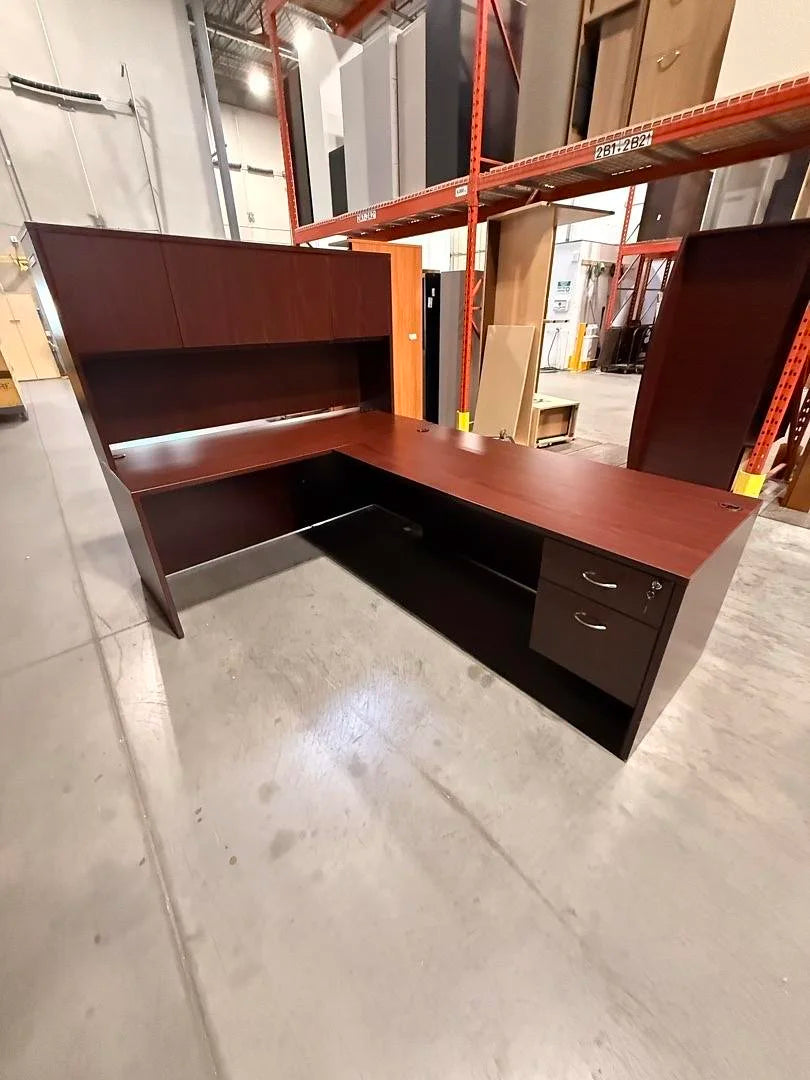 LH L-Shape Desk w/Hutch, BF Ped