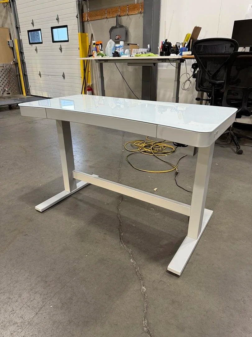 Glass Top Electronic Sit Stand Desk w/Pencil Drawer
