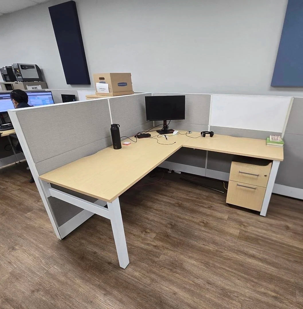 6' x 6' Global Boulevard L-Shape Workstation w/BF Ped (No Modular Power)